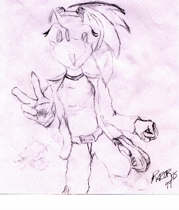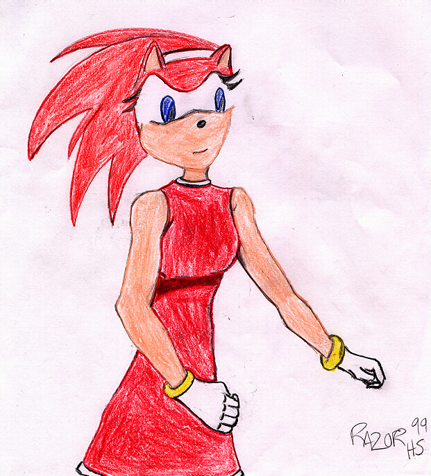 This isn't really a drawing of one of my characters... but I thought I'd put it here anyway. Sonic Adventurer drew me a character from the US Sonic comic, because I was interested to see what she looked like. This character (who I believe was a one-off and starred in the Sonic/Sailor Moon crossover) is copyright Archie (the American Sonic comic people). |