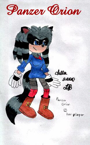 I'd always wanted Sallee do draw a pic of one of my characters, but she's a popular artist, so she gets a LOT of requests. But now... she's done this superb picture of Panzer Orion. She draws Panzer a heck of a lot better than I do, actually. |